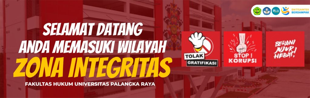 Selamat Datang di Wilayah Zona Integritas Fakultas Hukum Universitas Palangka Raya